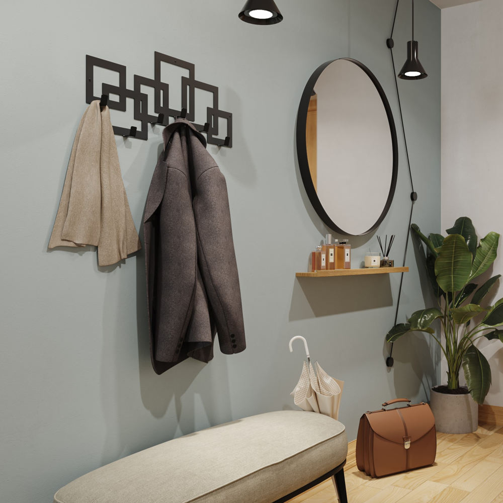 Διαθέτει 6 θέσεις για παλτό, τσάντες, καπέλα ή αξεσουάρ, με στιβαρό και κομψό σχεδιασμό που προσθέτει στυλ και λειτουργικότητα στον τοίχο σας.