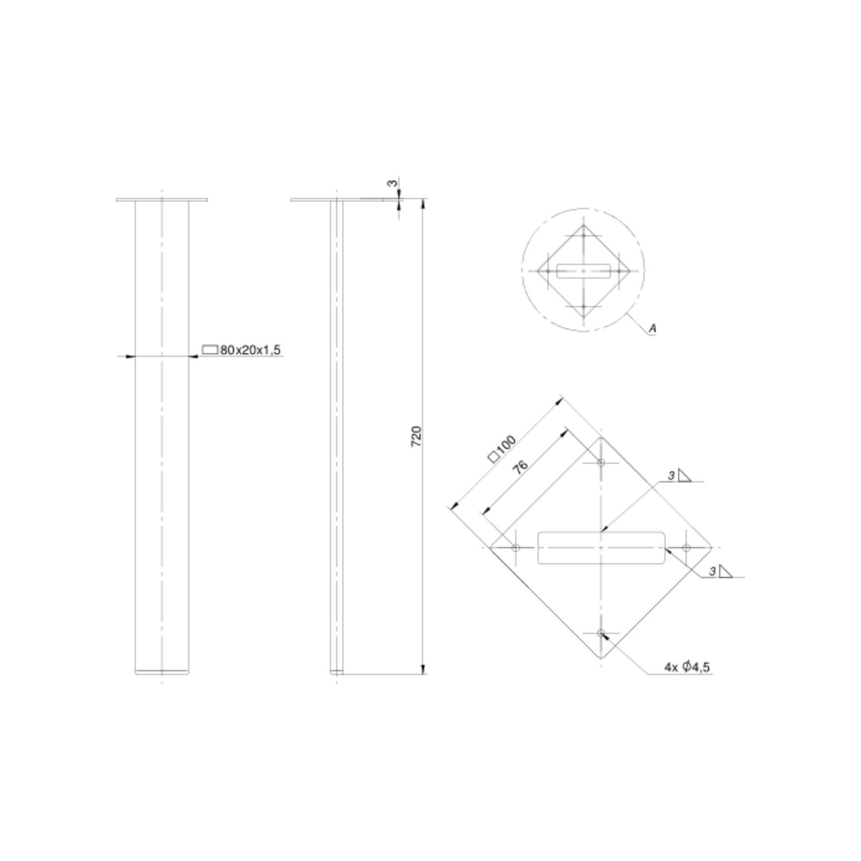 Πόδι Τραπεζιού από Χάλυβα 8x10x72εκ – Μαύρο | Creative Home