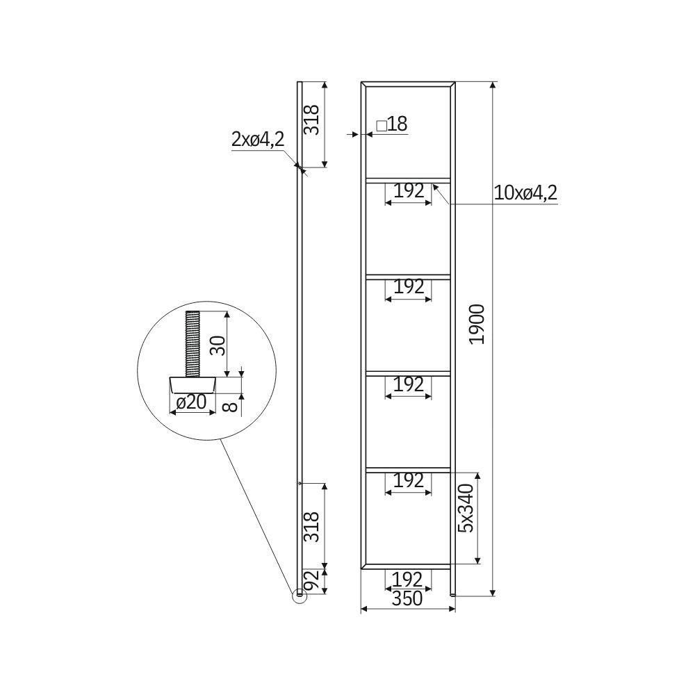 - Αντοχή βάρους: Έως 100kg ανά στήλη (20kg ανά ράφι)