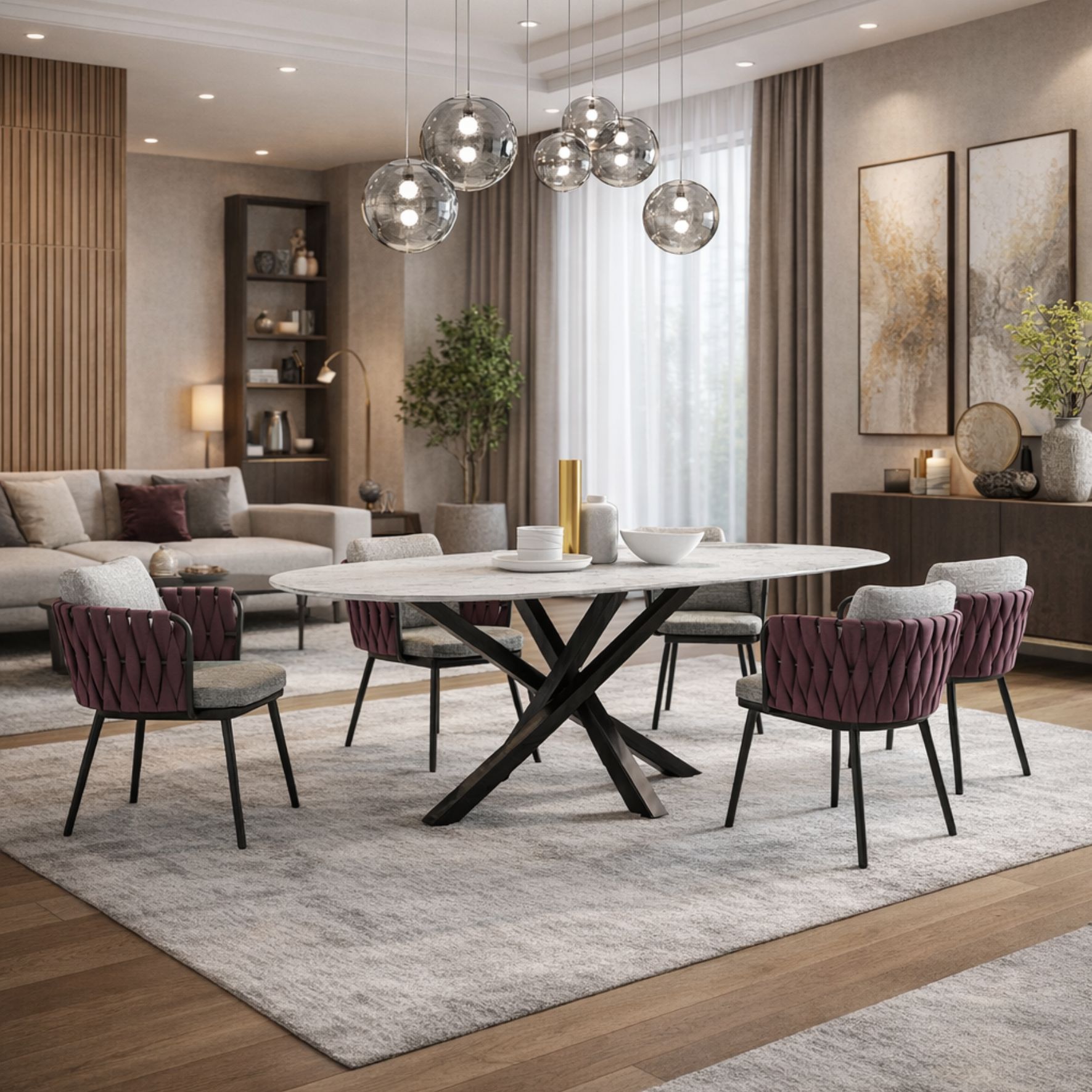 Κατασκευασμένη από χάλυβα με υψηλά πρότυπα ποιότητας, με μαύρο ματ ηλεκτροστατικό φινίρισμα και ρεγουλατόρους στο κάτω μέρος, είναι σχεδιασμένη για να προσφέρει σταθερότητα σε τραπεζαρίες, τραπέζια φαγητού ή επαγγελματικά γραφεία συνεδριάσεως.